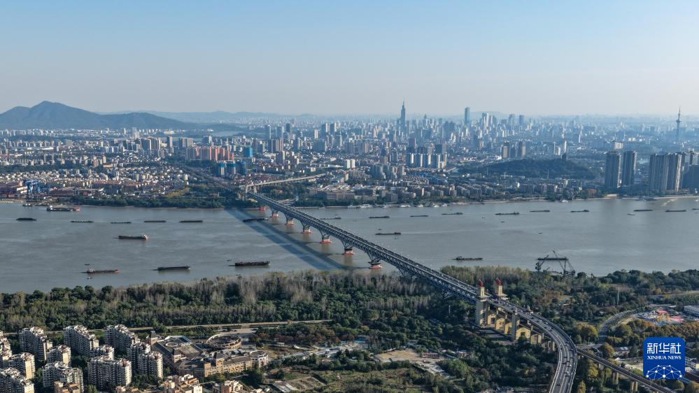 这是2025年11月18日拍摄的长江南京段和南京长江大桥(无人机照片)。江苏省地处江海之间,河湖纵横。水是这个地球的灵魂和灵魂。在江苏省,长江沿岸,数百艘船只争夺水源。沿河美丽的风景如念珠般蔓延开来。近年来,江苏省全面推进“江苏水运”建设,持续优化输水管网设计,不断完善节水工程体系。 “十四五”期间,江苏省加快畅通高效干渠网络建设,提高内河航运效率水路运输。他大力推进淮河海航道二期建设、芜沭河(江苏段)更新等国家重大水网工程。完善南北流域东线后续工程规划建设,优化船闸、泵站、水库、池塘、大中型坝设计。与此同时,江苏省正积极推进海岸带生态修复和河岸景观整治,打造河岸滨海地区滨海生态景观,推动区域内由点到点的河岸滨海地区整体振兴和功能再开发。河两岸,展示着代表生态景观的绿色画卷。江苏省以水为笔,在江河湖海的交汇处,描绘出针叶林新形象。图片提供:李新华社记者 薄