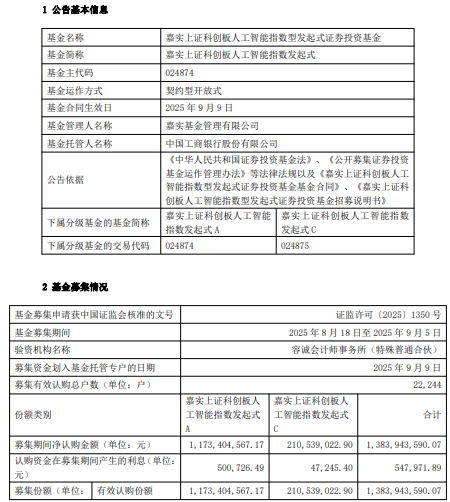 中国经济网络北京,9月10日。今天,江达基金宣布了有关投资投资投资智能智能智能智能证券情报和创新创新创新创新的有效条目的广告。融资期间的净订阅金额为1,383,943,590,07元人口,订购基金在融资期间产生的利息为RMB547,971.89元人民币,总股票总数为1,384,491,561.96。 Shanke Fund管理员于2020年3月成为研究员,并担任Jiashen Fund Management Co.,Ltd。的研究人员加入指数投资部门,并截至2024年1月11日担任基金经理。